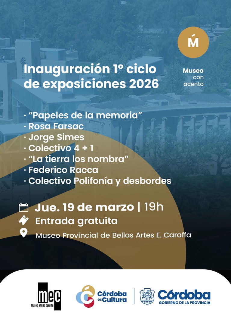 El jueves 19 de marzo a las 19h, el Museo Caraffa inaugura su primer lote de muestras del año, un recorrido que ocupará todas sus salas. Con propuestas individuales y colectivas, artistas locales e internacionales, la nueva programación articula arte contemporáneo, memoria histórica y debate público, invitando a los visitantes a recorrer un entramado de voces que dialogan con el pasado para interpelar el presente.