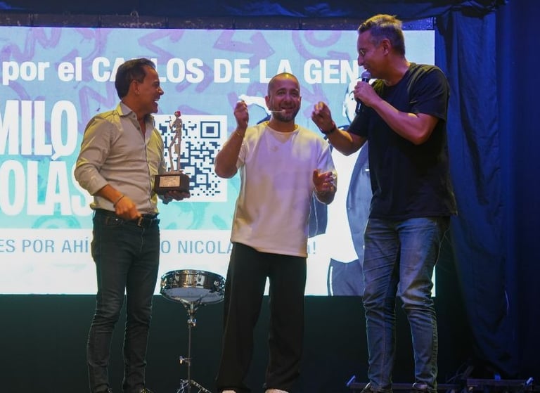 Durante la noche inaugural, Camilo Nicolás recibió un reconocimiento por su aporte a la industria cultural cordobesa y su destacada trayectoria artística. La distinción consistió en una estatuilla realizada por el artesano Marcelo Gutiérrez y fue entregada por autoridades de la Agencia Córdoba Cultura.